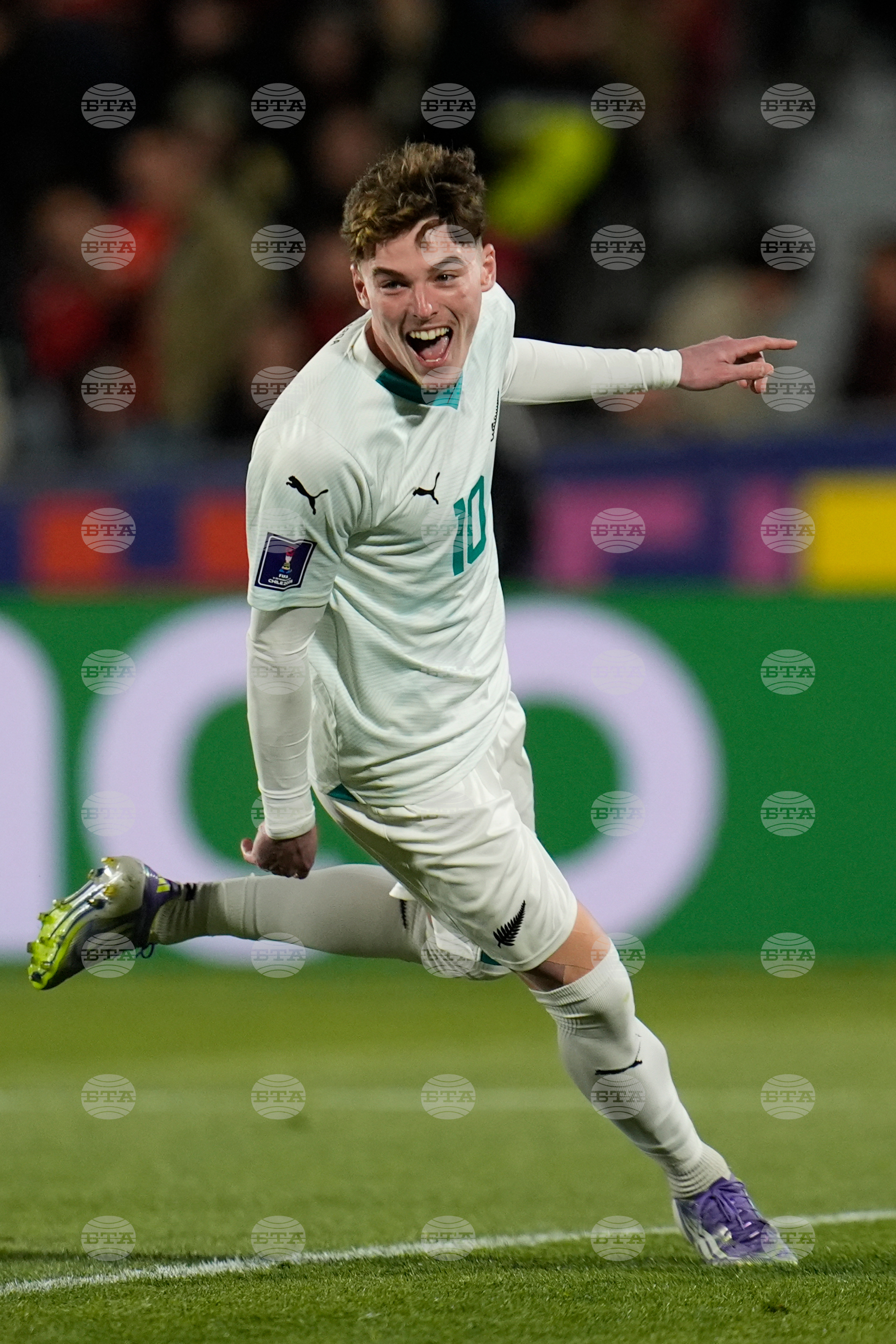 New Zealand's Nathan Walker celebrates after scoring his side's first goal against Chile during a FIFA U-20 World Cup Group A soccer match at National Stadium in Santiago, Chile, Saturday, Sept. 27, 2025. (AP Photo/Matias Delacroix)