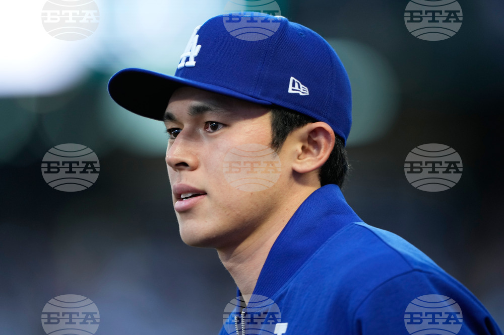 Los Angeles Dodgers starting pitcher Roki Sasaki looks on before a baseball game against the Seattle Mariners, Saturday, Sept. 27, 2025, in Seattle. (AP Photo/Ryan Sun)
