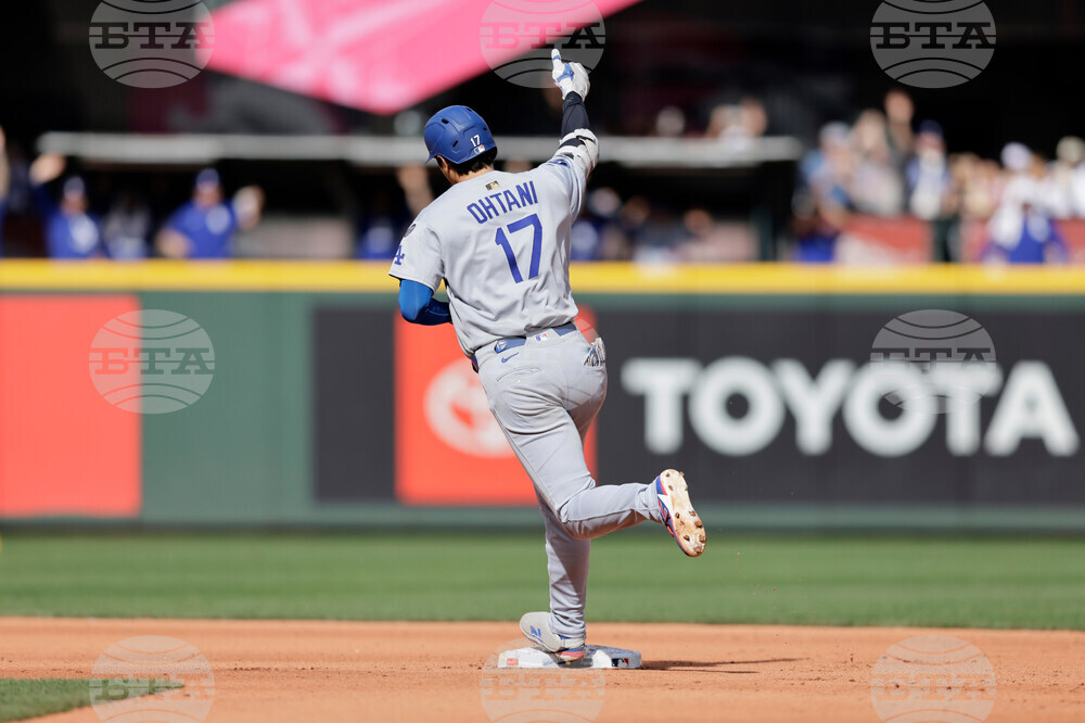 Los Angeles Dodgers Shohei Ohtani doubles against the Seattle Mariners during a baseball game, Sunday, Sept. 28, 2025, in Seattle. (AP Photo/John Froschauer)