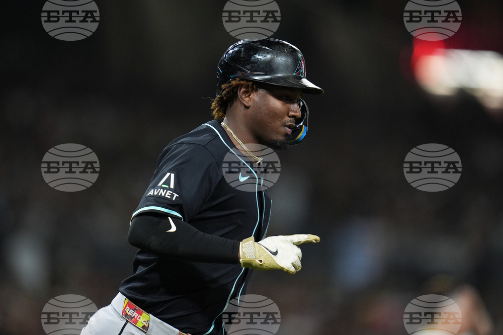 Arizona Diamondbacks' Geraldo Perdomo celebrates after hitting a home run during the fifth inning of a baseball game against the San Diego Padres Saturday, Sept. 27, 2025, in San Diego. (AP Photo/Gregory Bull)