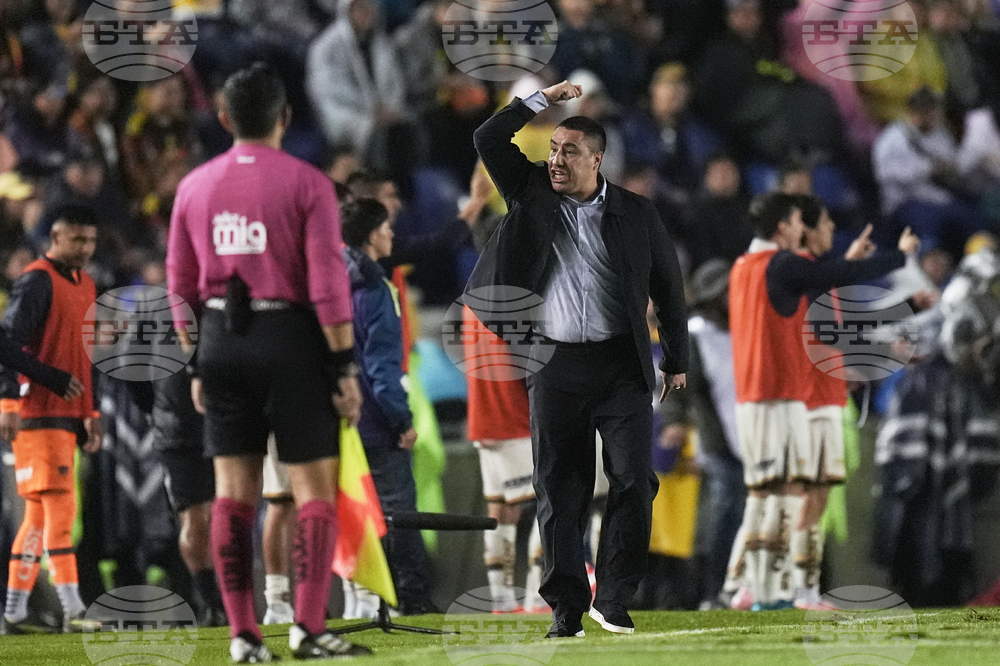 America's coach Andre Jardine celebrate after beating 4-1 Pumas during a Mexican soccer league match in Mexico City, Saturday, Sept. 27, 2025. (AP Photo/Eduardo Verdugo)