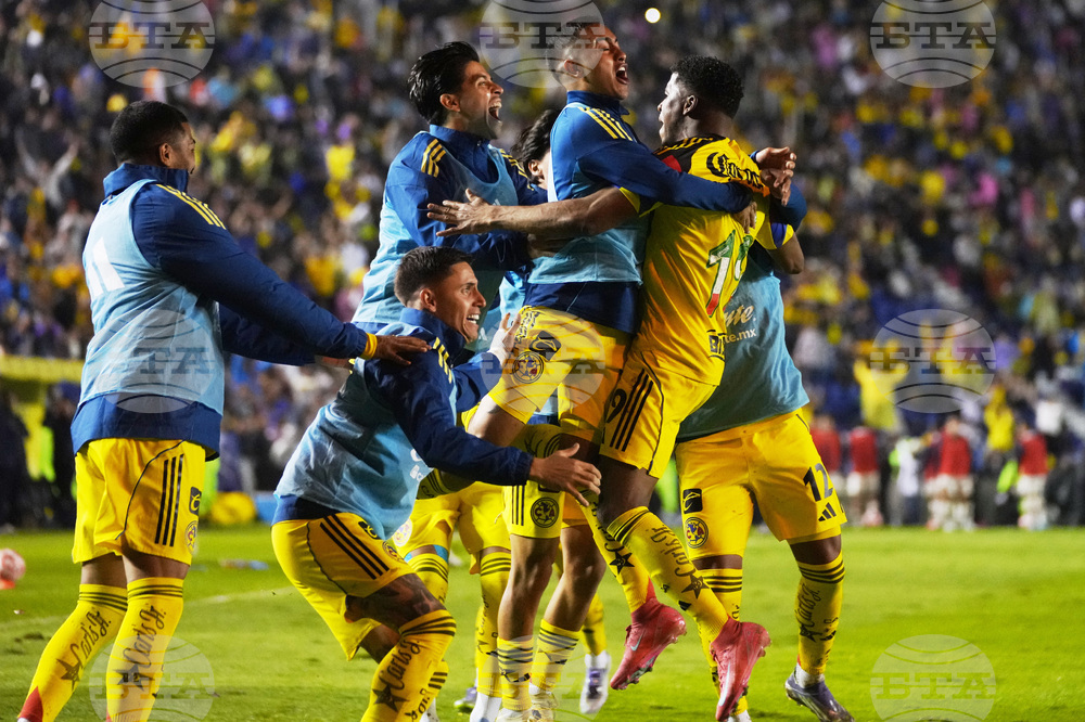 America's Alejandro Zendejas celebrates scoring his side's 4th goal from the penalty spot against Pumas during a Mexican soccer league match in Mexico City, Saturday, Sept. 27, 2025. (AP Photo/Eduardo Verdugo)
