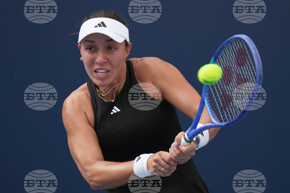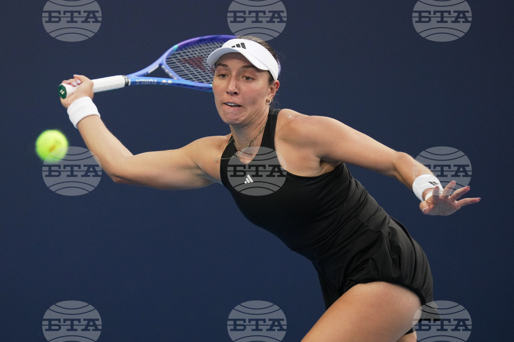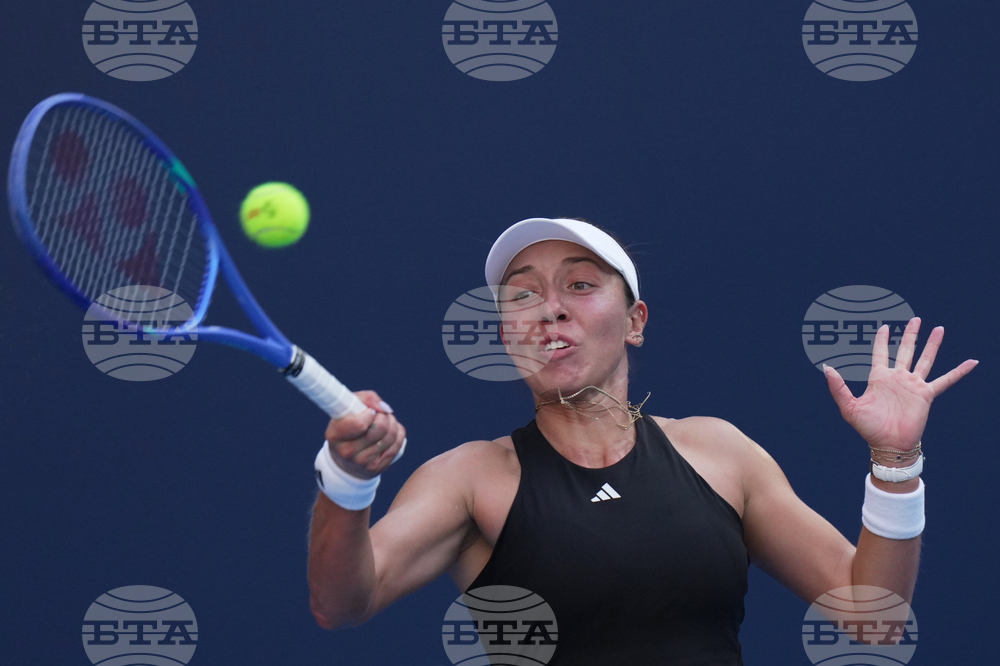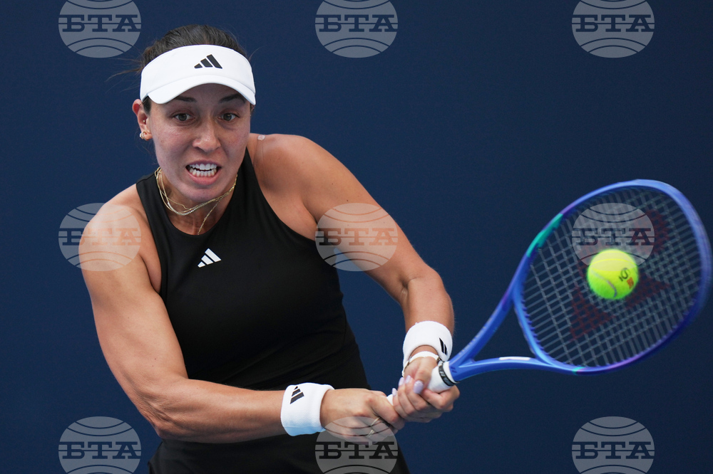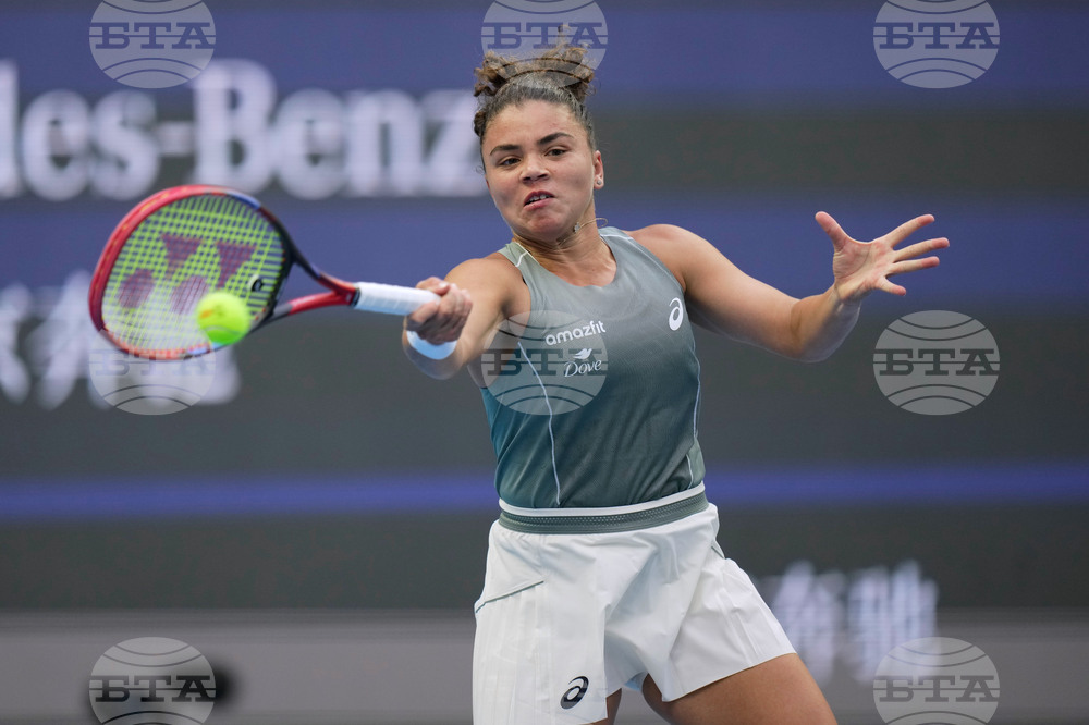 Jessica Pegula, of the United States plays a backhand return to Emma Raducanu, of Britain during the women's singles match for the China Open tennis tournament, at the National Tennis Center, in Beijing, Monday, Sept. 29, 2025. (AP Photo/Andy Wong)