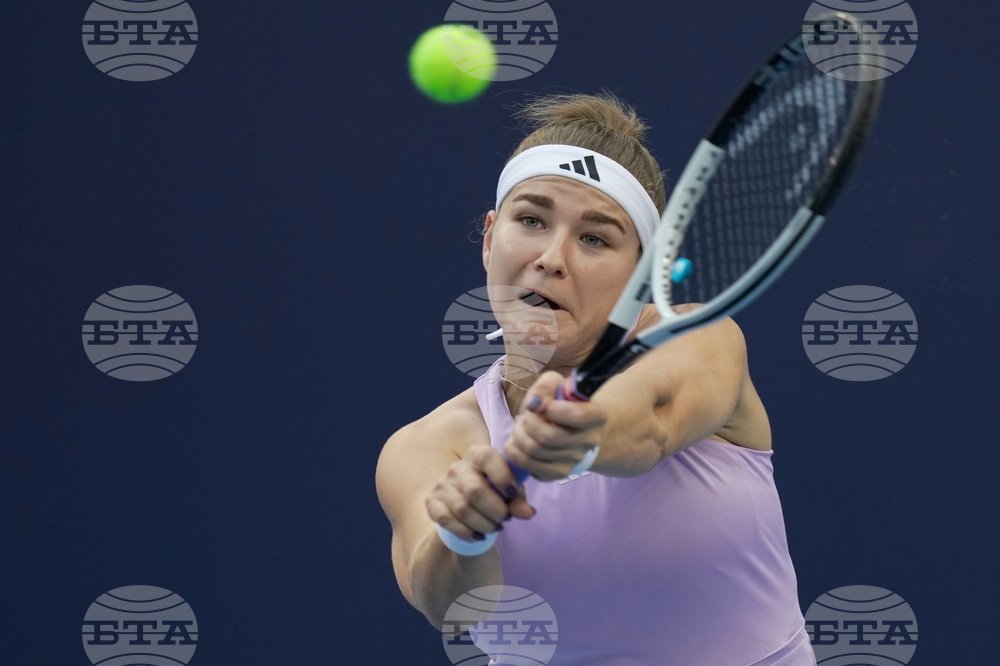 Mirra Andreeva of Russia returns a backhand shot to Jessica Bouzas Maneiro, of Spain during a women's singles match of the China Open tennis tournament, at the National Tennis Center, in Beijing, China, Monday, Sept. 29, 2025. (AP Photo/Mahesh Kumar A.)