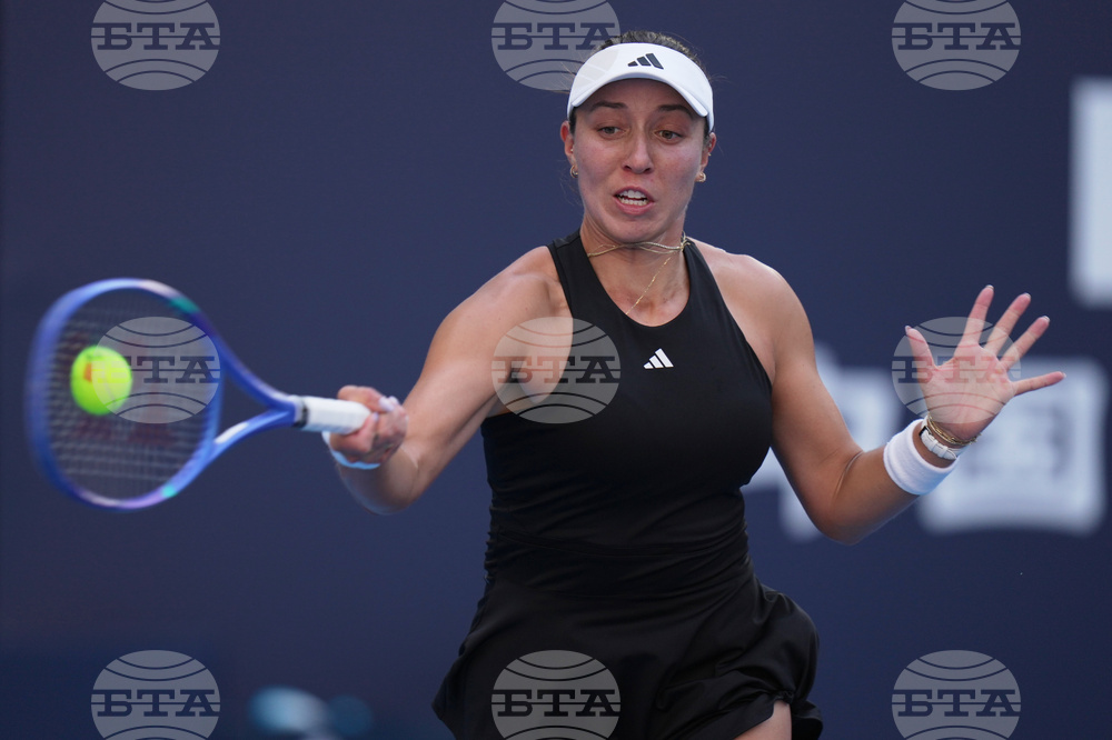 Jessica Pegula, of the United States plays a forehand return to Emma Raducanu, of Britain during the women's singles match for the China Open tennis tournament, at the National Tennis Center, in Beijing, Monday, Sept. 29, 2025. (AP Photo/Andy Wong)