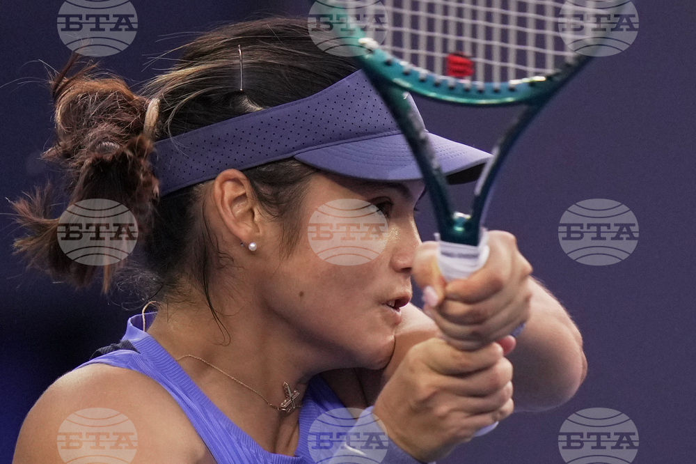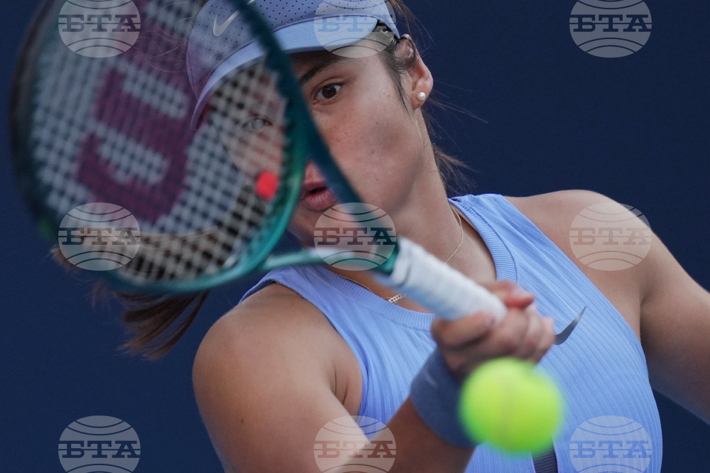 Emma Raducanu, of Britain plays a backhand return to Jessica Pegula, of the United States during the women's singles match for the China Open tennis tournament, in Beijing, Monday, Sept. 29, 2025. (AP Photo/Andy Wong)