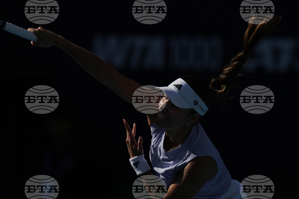 Sofia Kenin of the United States looks at a ball for a return to Jasmine Paolini of Italy during a women's singles match of the China Open tennis tournament, at the National Tennis Center, in Beijing, China, Sunday, Sept. 28, 2025. (AP Photo/Mahesh Kumar A.)