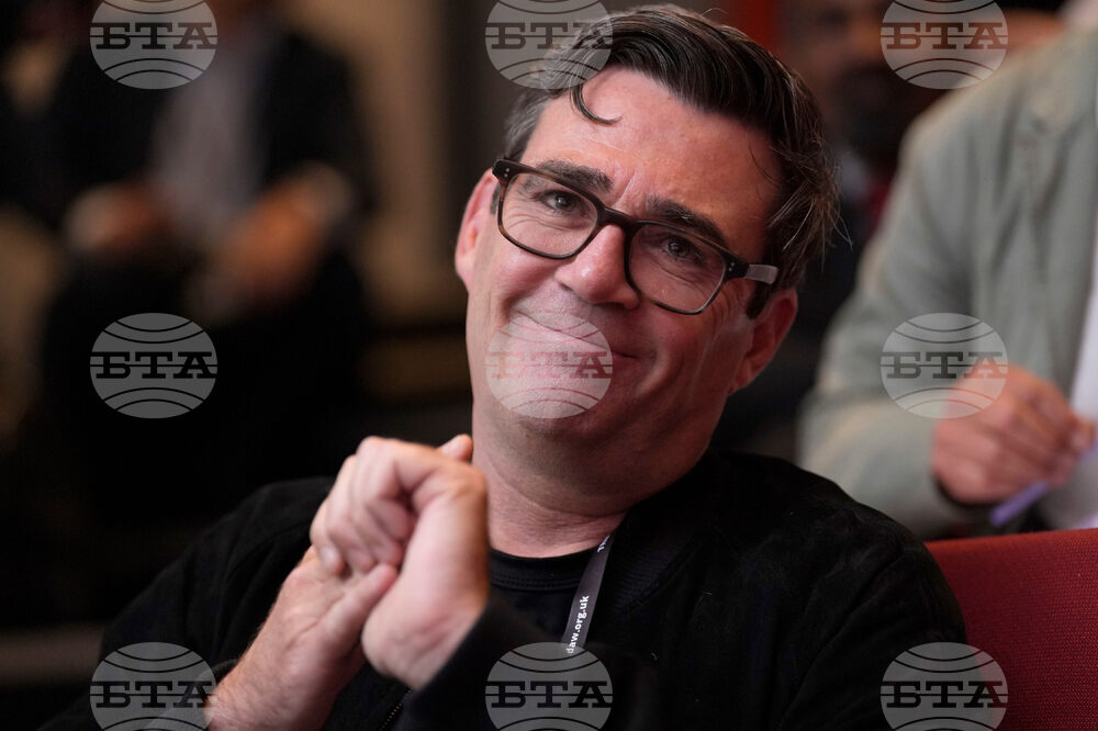 Mayor of Greater Manchester Andy Burnham attending a Labour for a New Democracy fringe event at the Labour Party Conference at the ACC Liverpool in Liverpool, England, Sunday, Sept. 28, 2025. (Danny Lawson/PA via AP)