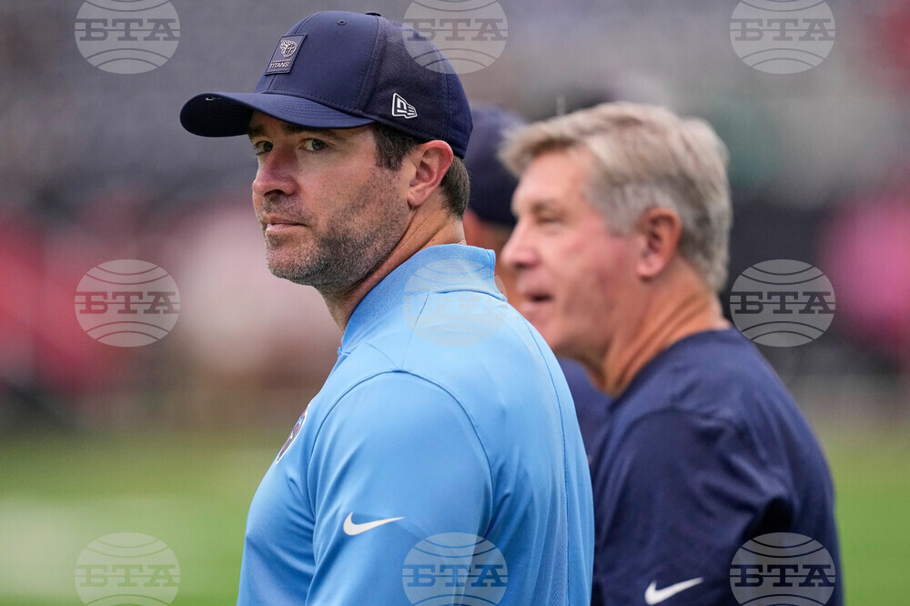 Tennessee Titans head coach Brian Callahan walks the sideline during the first half of an NFL football game against the Houston Texans, Sunday, Sept. 28, 2025, in Houston. (AP Photo/David J. Phillip)