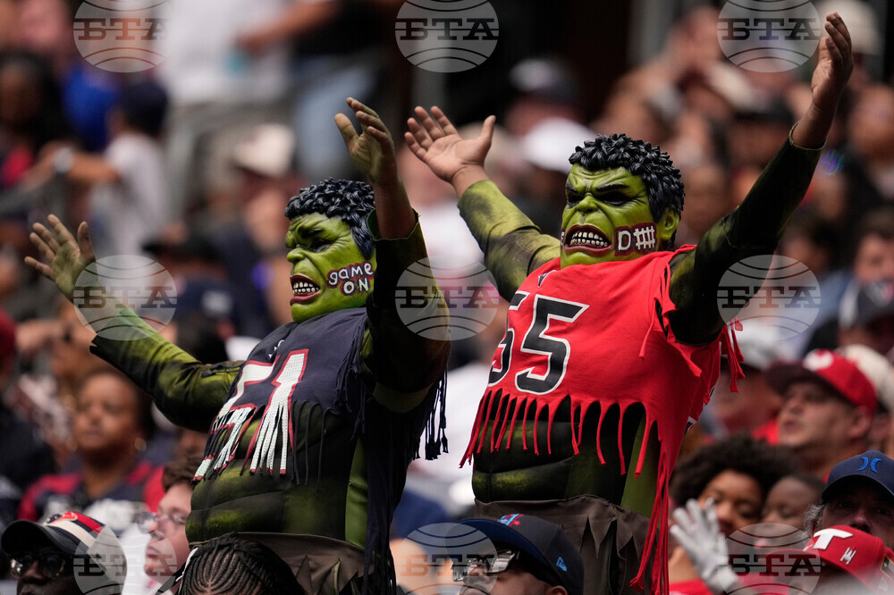 Houston Texans fans cheer during the first half of an NFL football game against the Tennessee Titans, Sunday, Sept. 28, 2025, in Houston. (AP Photo/Ashley Landis)