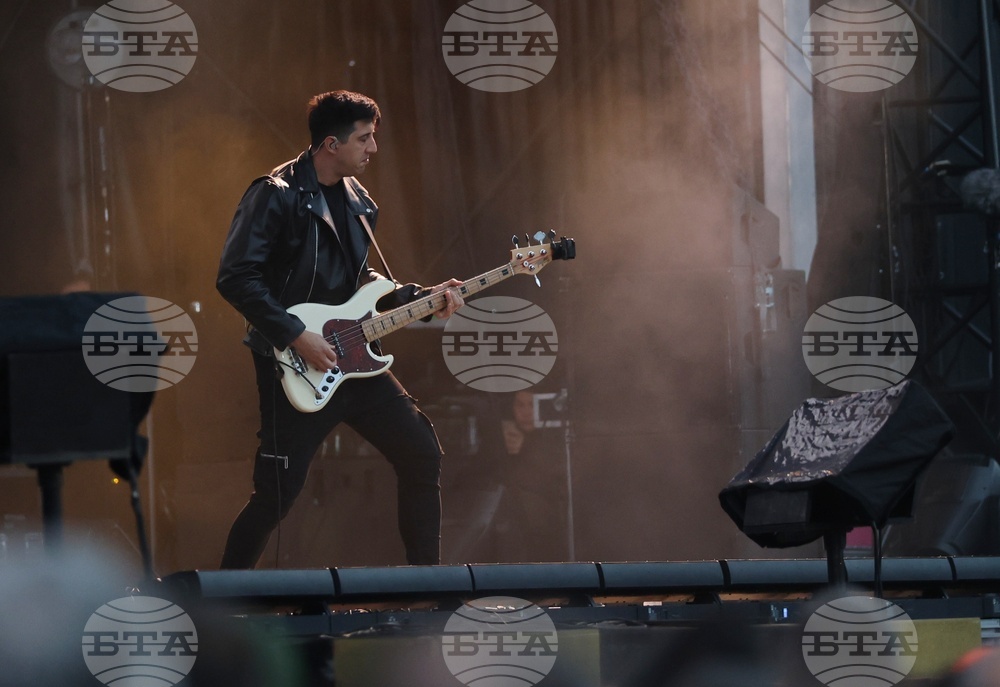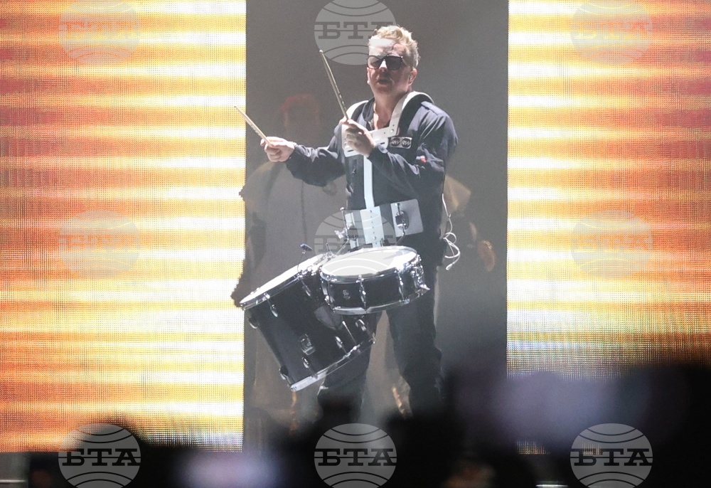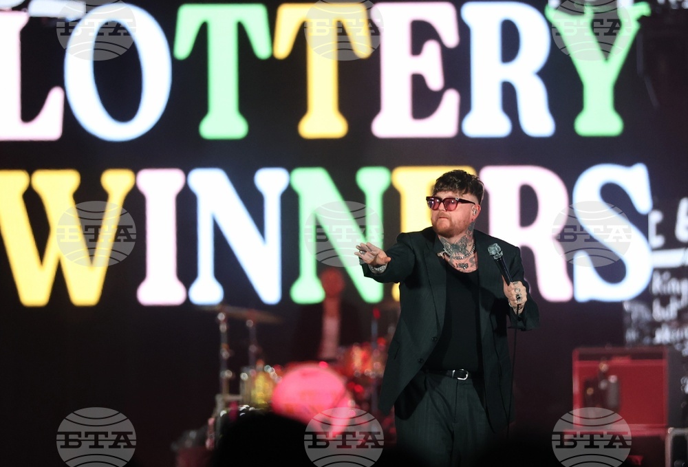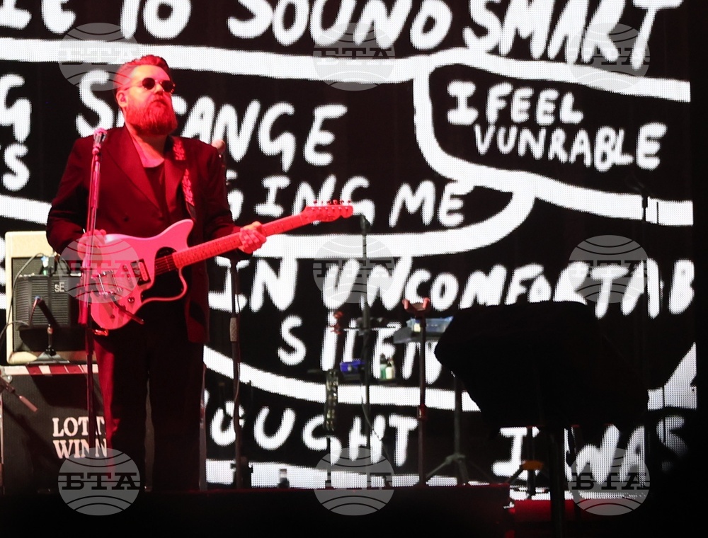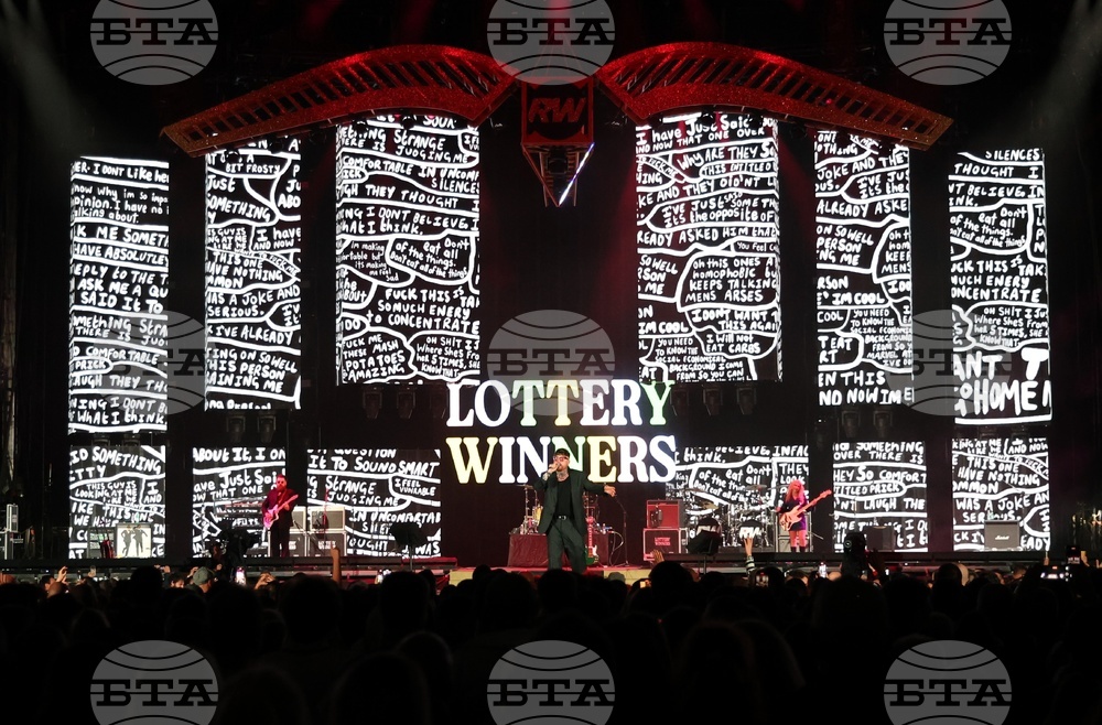 София (28 септември 2025) Световната поп звезда Роби Уилямс изнася концерт на стадион „Васил Левски“ в София. Събитието е част от голямото му световно турне Robbie Williams Live 2025. На снимката: вокалистът на групата The Lottery Winners-Thom Rylance.