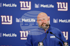 New York Giants head coach Brian Daboll answers questions during a news conference after an NFL football game against the Los Angeles Chargers, Sunday, Sept. 28, 2025, in East Rutherford, N.J. (AP Photo/Adam Hunger)