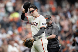 San Francisco Giants starter Logan Webb (62) leaves the field after a pitching change during the sixth inning of a baseball game against the Colorado Rockies, Sunday, Sept. 28, 2025, in San Francisco. (AP Photo/Thien-An Truong)