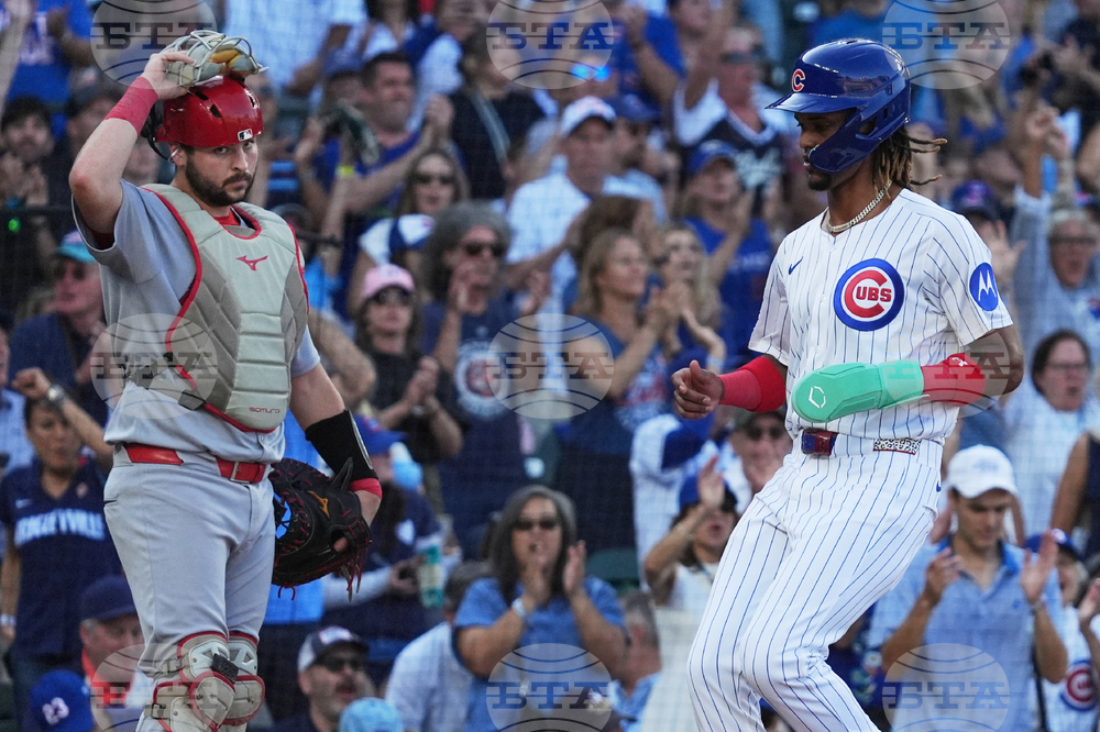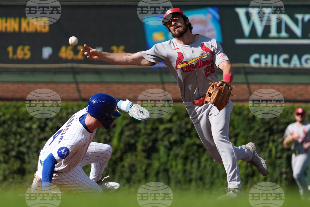 The Chicago Cubs play against the St. Louis Cardinals during the second inning of a baseball game in Chicago, Sunday, Sept. 28, 2025. (AP Photo/Nam Y. Huh)