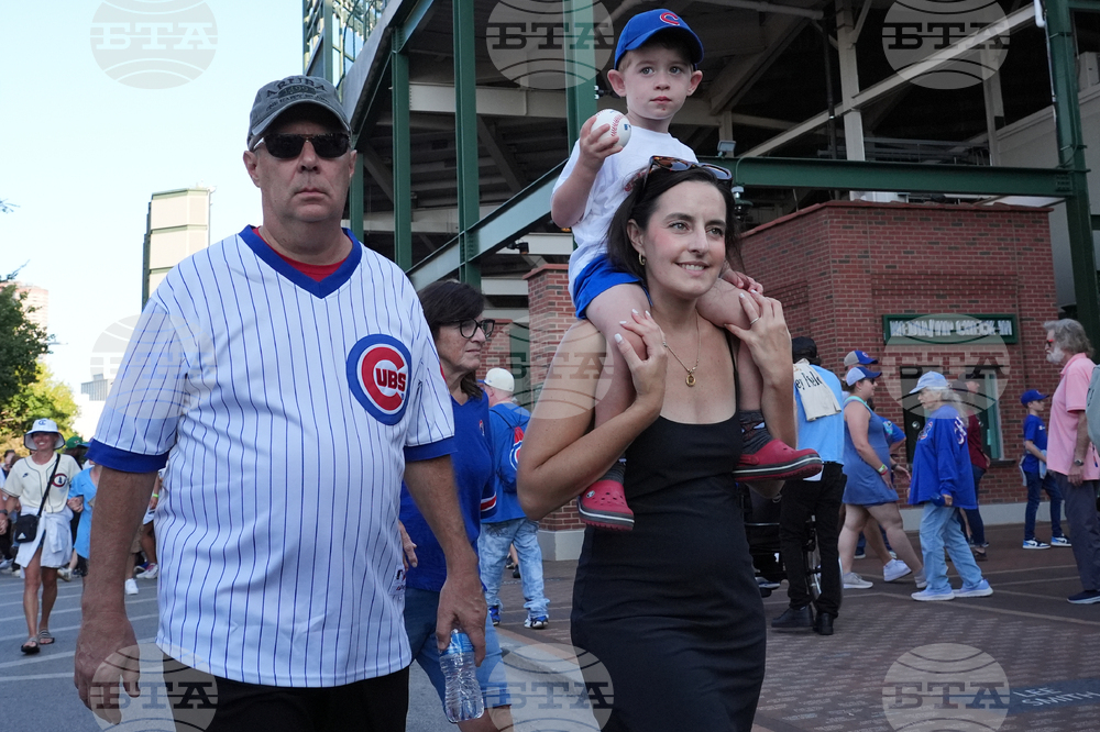 Chicago Cubs fans leave after the Cubs defeated the St. Louis Cardinals in a baseball game in Chicago, Sunday, Sept. 28, 2025. (AP Photo/Nam Y. Huh)