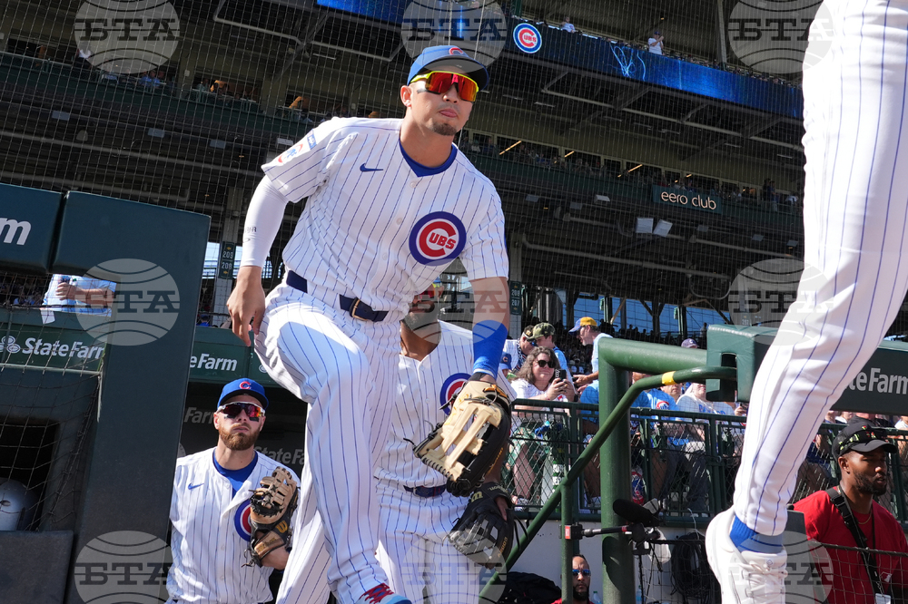 Chicago Cubs' Seiya Suzuki, of Japan, runs to the field before a baseball game against the St. Louis Cardinals in Chicago, Sunday, Sept. 28, 2025. (AP Photo/Nam Y. Huh)