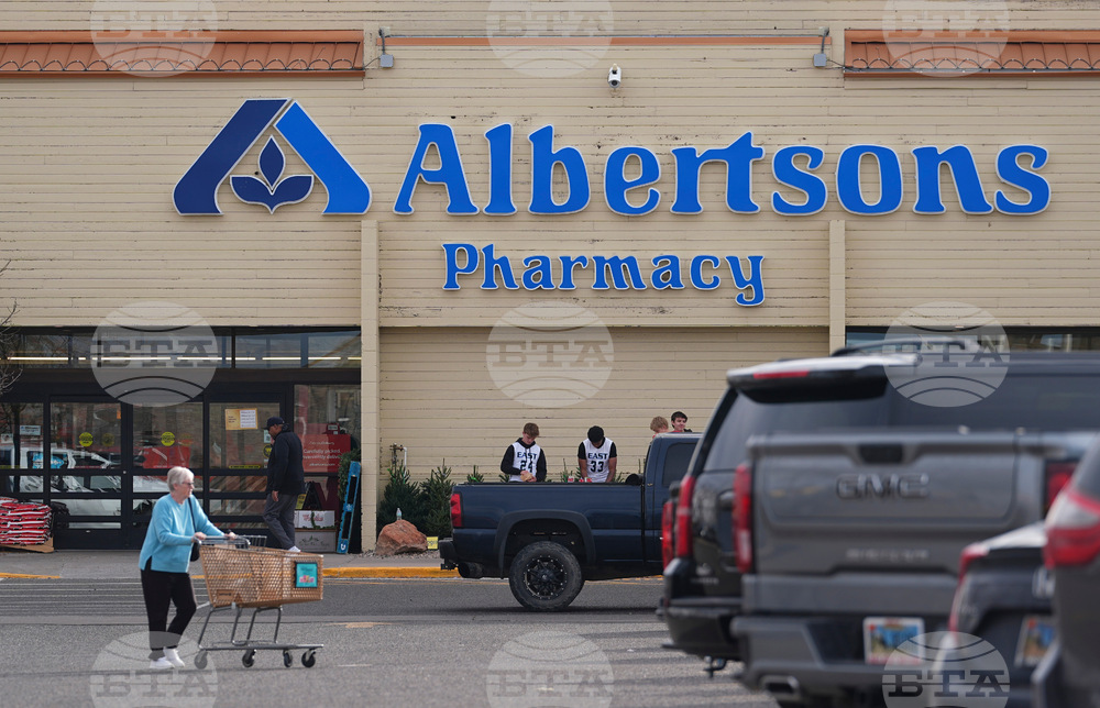 FILE - Shoppers head into an Albertson's grocery store Nov. 23, 2024, in Cheyenne, Wyo. (AP Photo/David Zalubowski, File)