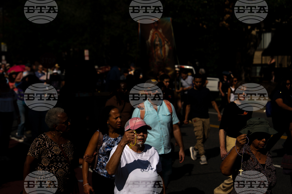 People walk from Shrine of the Sacred Heart to Cathedral of St. Matthew the Apostle during the first reflection procession in observance of the 111th world day of migrants and refugees and the jubilee of migrants, Sunday, Sept. 28, 2025, in Washington. (AP Photo/Julia Demaree Nikhinson)