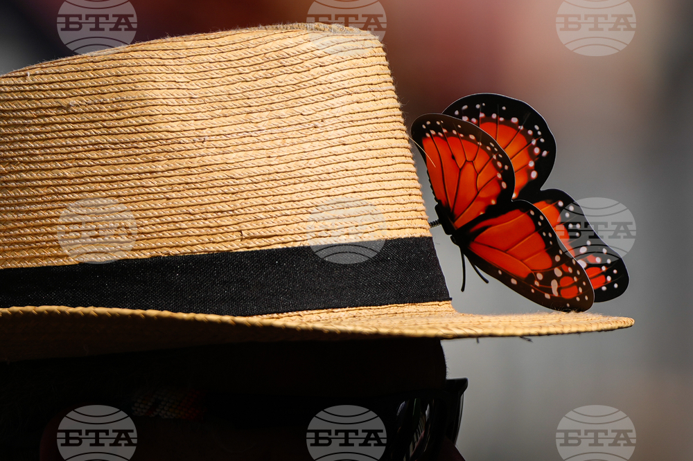 A person wears a monarch butterfly figurine on their hat while walking from Shrine of the Sacred Heart to Cathedral of St. Matthew the Apostle during the first reflection procession in observance of the 111th world day of migrants and refugees and the jubilee of migrants, Sunday, Sept. 28, 2025, in Washington. (AP Photo/Julia Demaree Nikhinson)
