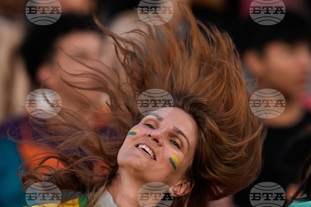 A fan of Brazil cheers prior to a FIFA U-20 World Cup Group C soccer match between Brazil and Mexico at National Stadium in Santiago, Chile, Sunday, Sept. 28, 2025. (AP Photo/Matias Delacroix)