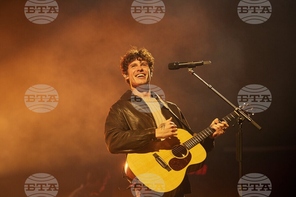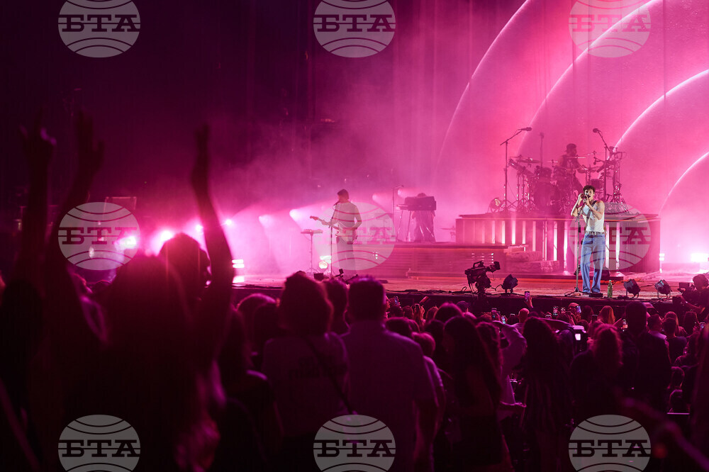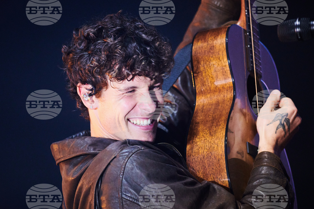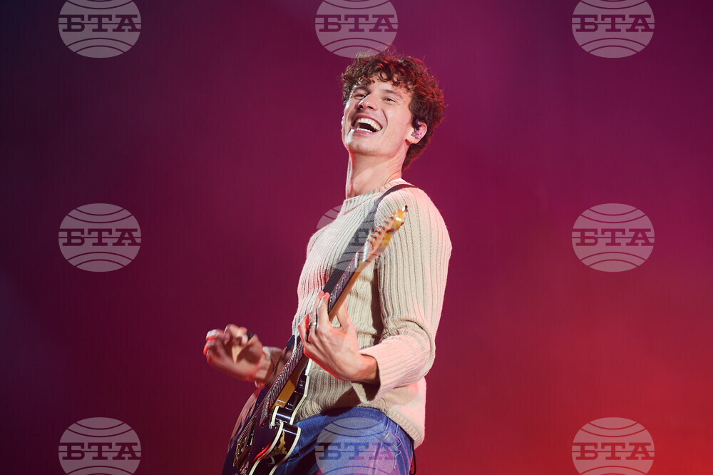 Shawn Mendes performs at Budweiser Stage in Toronto, Sunday, Sept. 28, 2025. (Sammy Kogan/The Canadian Press via AP)