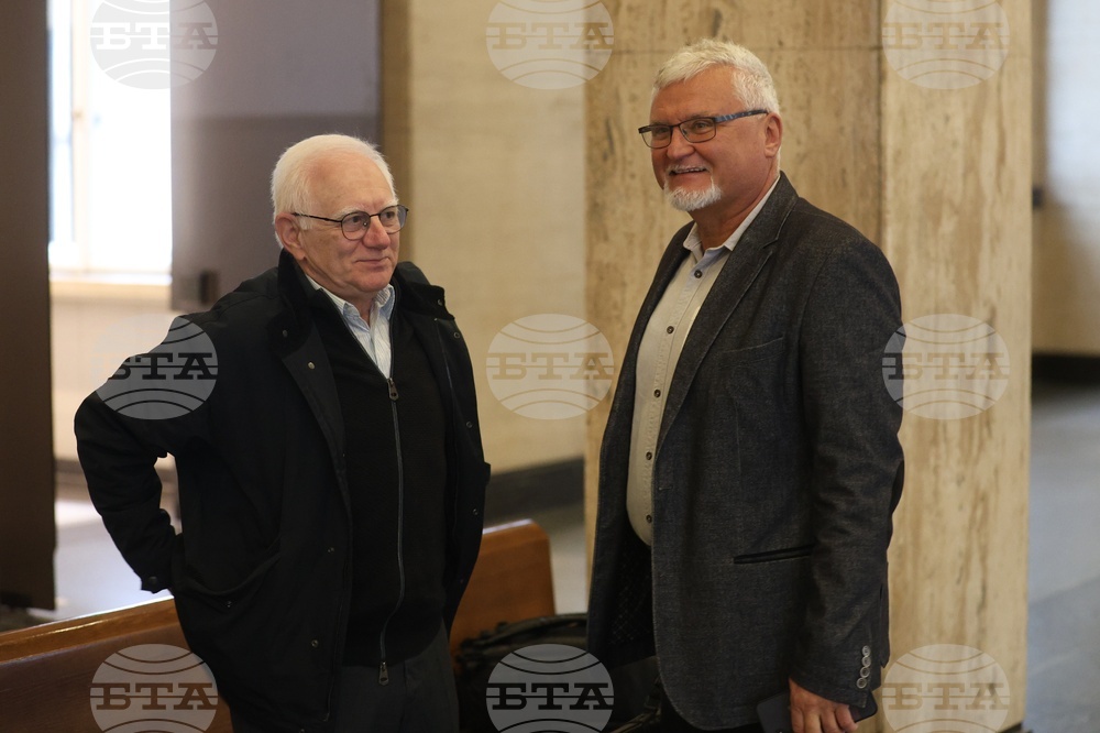 София (29 септември 2025) Заседание по делото срещу Петьо Петров, известен като Еврото, се провежда в сградата на Съдебната палата. На снимката: адвокат Николай Манчев и адвокат Минчо Спасов (вдясно).