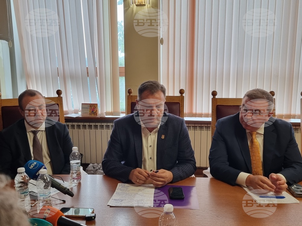 Велико Търново (29 септември 2025) Във връзка със ситуацията около водоподаването в региона и появилите се информации в публичното пространство и социалните мрежи, че във Велико Търново се очаква воден режим се провежда информационна среща по повод намалялото ниво на язовир "Йовковци". На снимката (от ляво надясно): министърът на регионалното развитие и благоустройството Иван Иванов, кметът на Велико Търново Даниел Панов и народният представител от ГЕРБ-СДС д-р Костадин Ангелов.