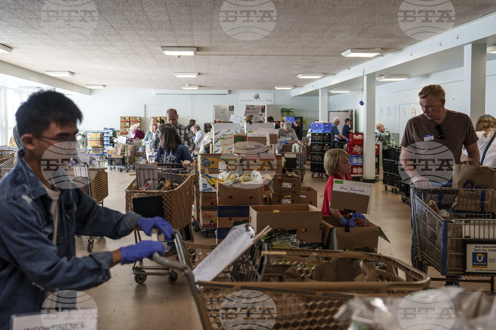 Volunteer shoppers fill grocery orders at the Edmonds Food Bank in Edmonds, Wash., Monday, Sept. 8, 2025. (AP Photo/Annika Hammerschlag)