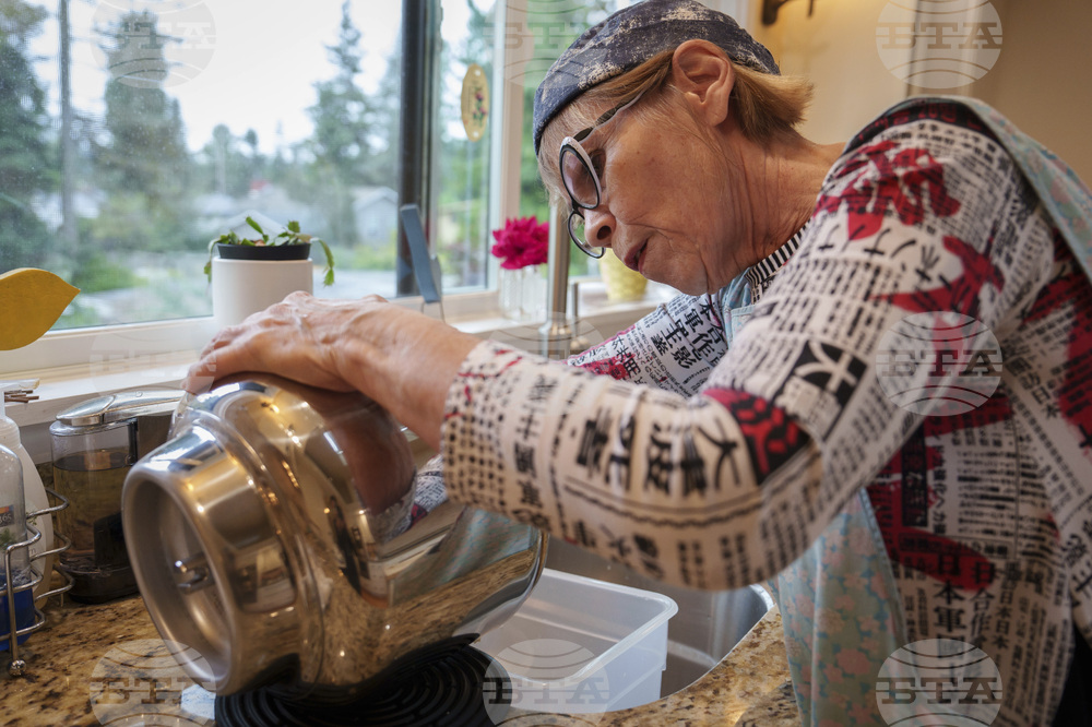 Hans and Cheryl Ewaldsen bake energy cookies and bread for Community Loaves at their home in Edmonds, Wash., Saturday, Sept. 6, 2025. (AP Photo/Annika Hammerschlag)