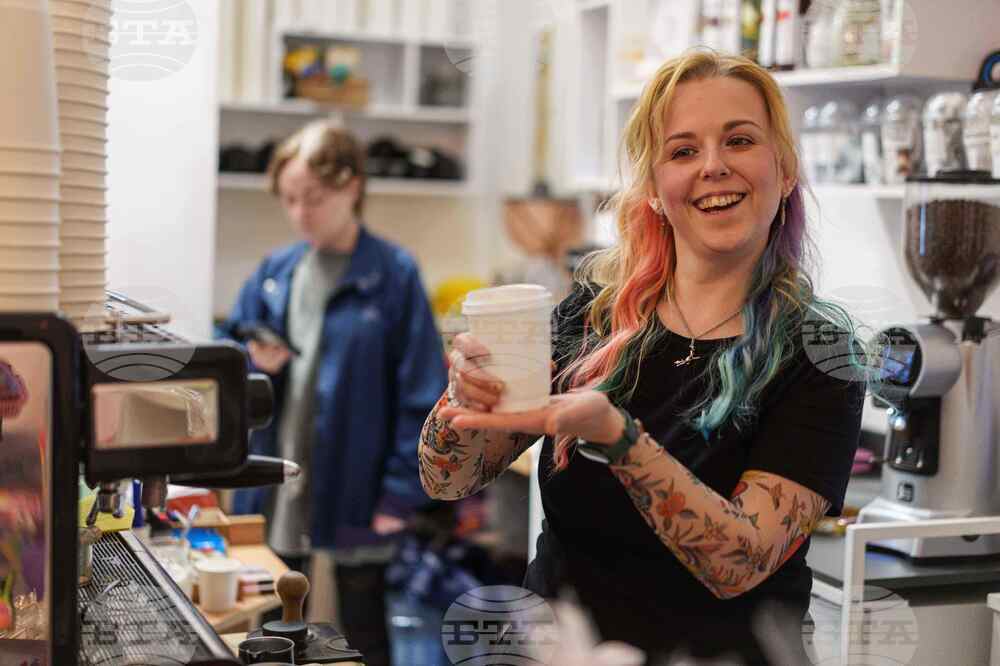 Svitlana Shtanko, 38, owner of the coffee shop "Navzaiem", makes coffee for people who's apartments been lost and damaged after a Russian attack in Kyiv, Ukraine, on Monday, Sept. 29, 2025. (AP Photo/Evgeniy Maloletka)