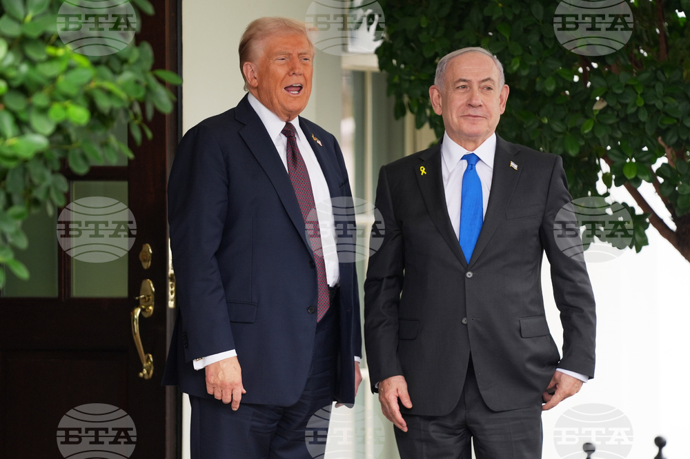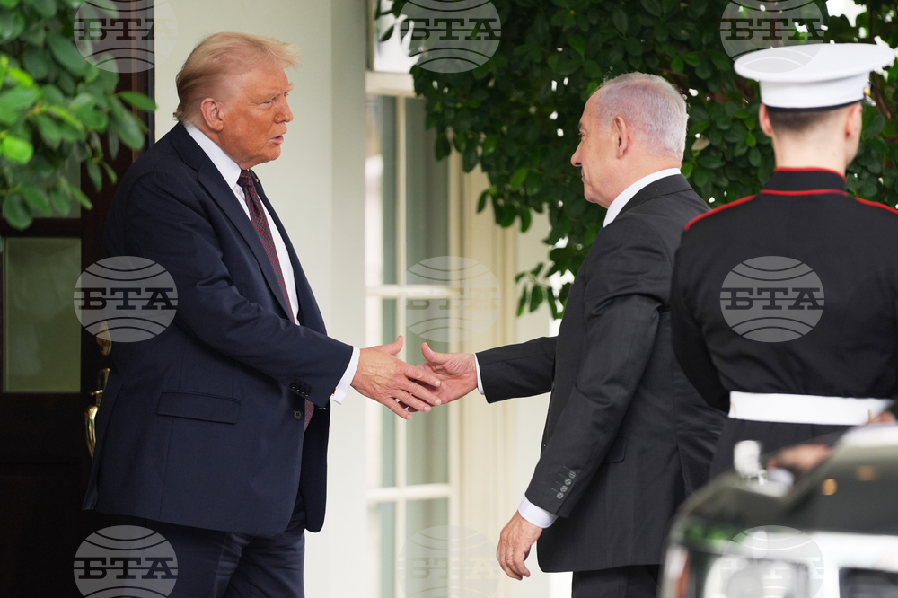 President Donald Trump, left, greets Israeli Prime Minister Benjamin Netanyahu at the White House, Monday, Sept. 29, 2025, in Washington. (AP Photo/Evan Vucci)
