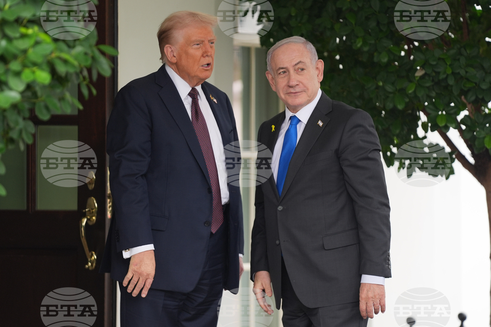 President Donald Trump, left, departs a news conference with Israeli Prime Minister Benjamin Netanyahu in the State Dining Room of the White House, Monday, Sept. 29, 2025, in Washington. (AP Photo/Evan Vucci)