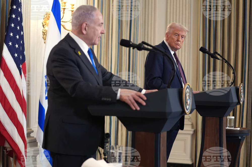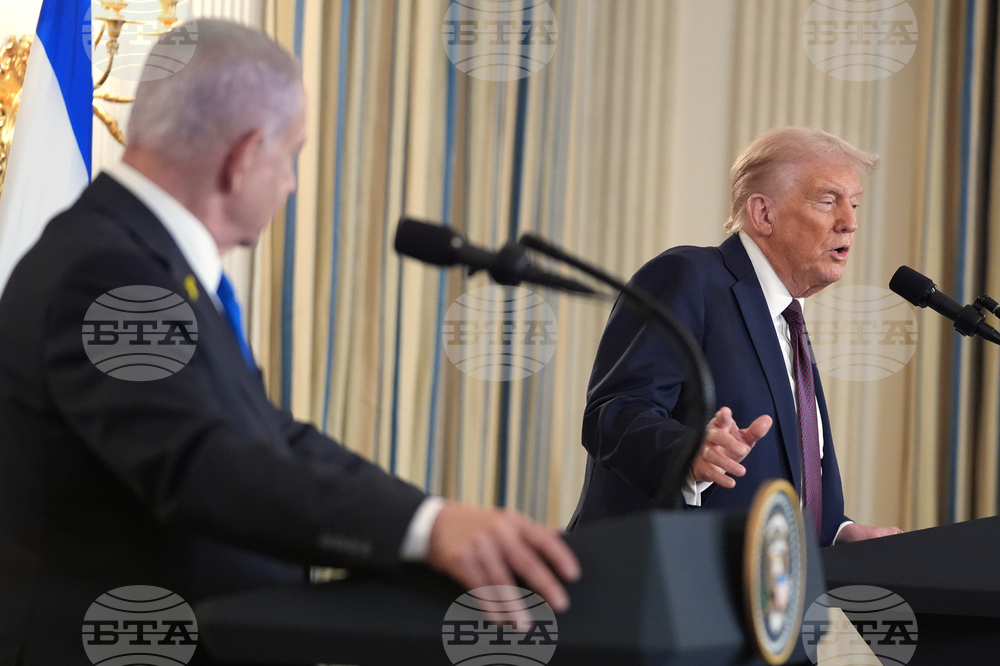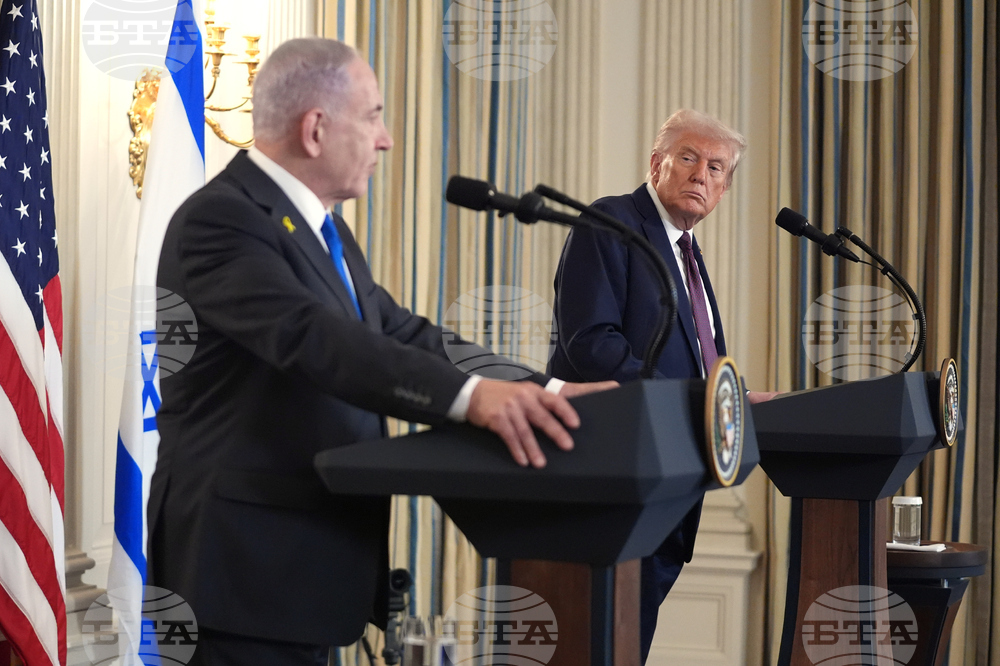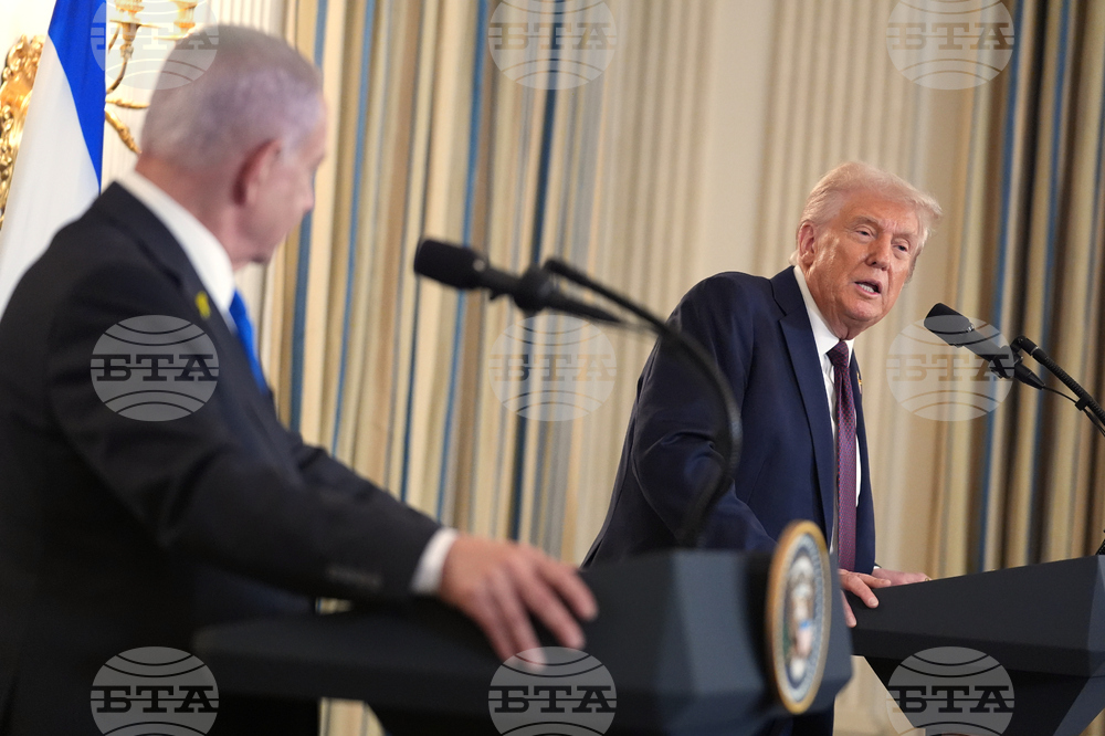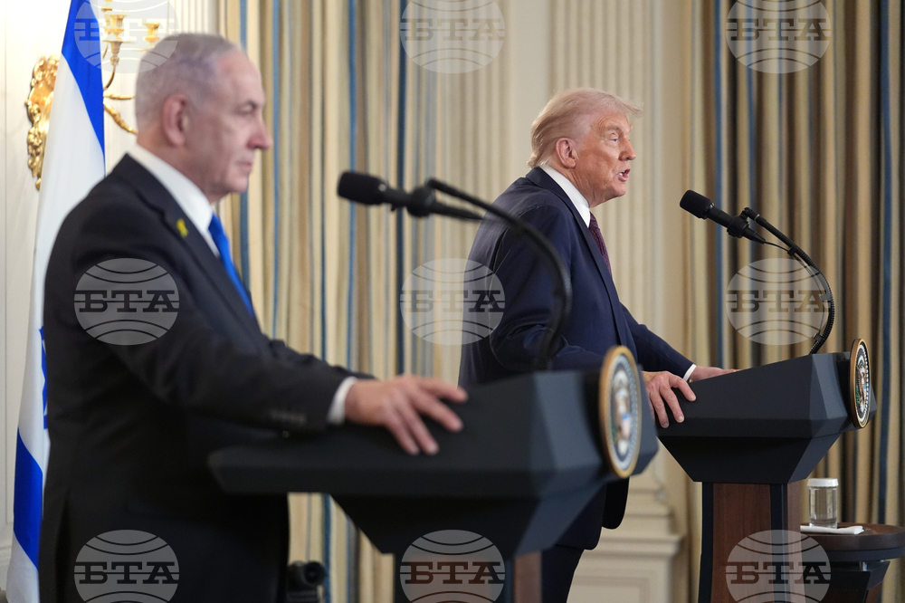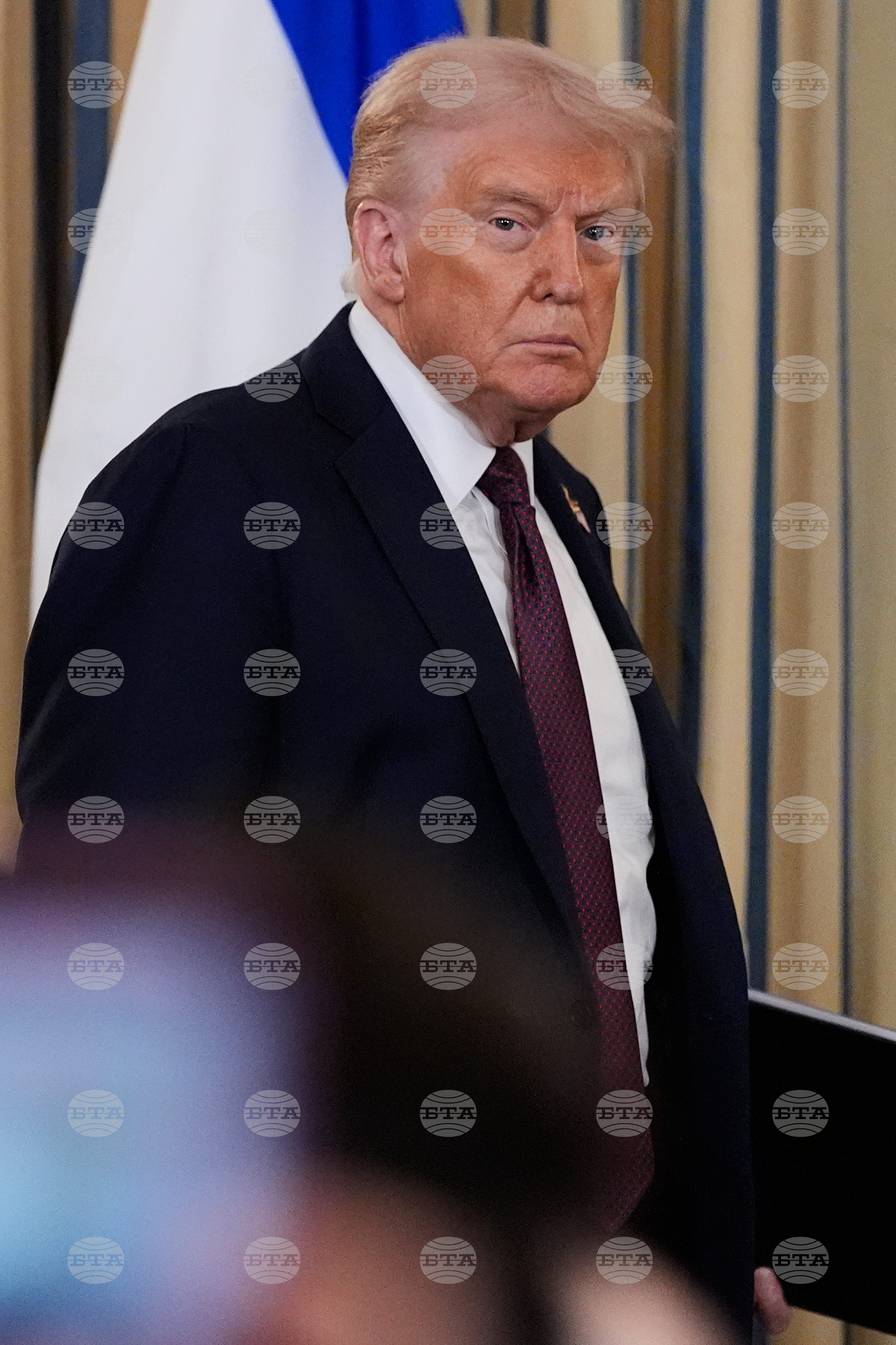 President Donald Trump speaks at the conclusion of a news conference with Israeli Prime Minister Benjamin Netanyahu, left, as they depart the State Dining Room of the White House, Monday, Sept. 29, 2025, in Washington. (AP Photo/Evan Vucci)