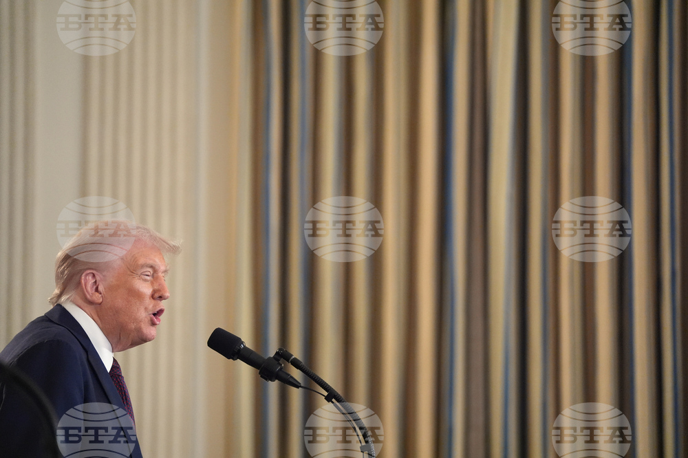President Donald Trump, from left, speaks during a news conference with Israeli Prime Minister Benjamin Netanyahu in the State Dining Room of the White House, Monday, Sept. 29, 2025, in Washington. (AP Photo/Evan Vucci)