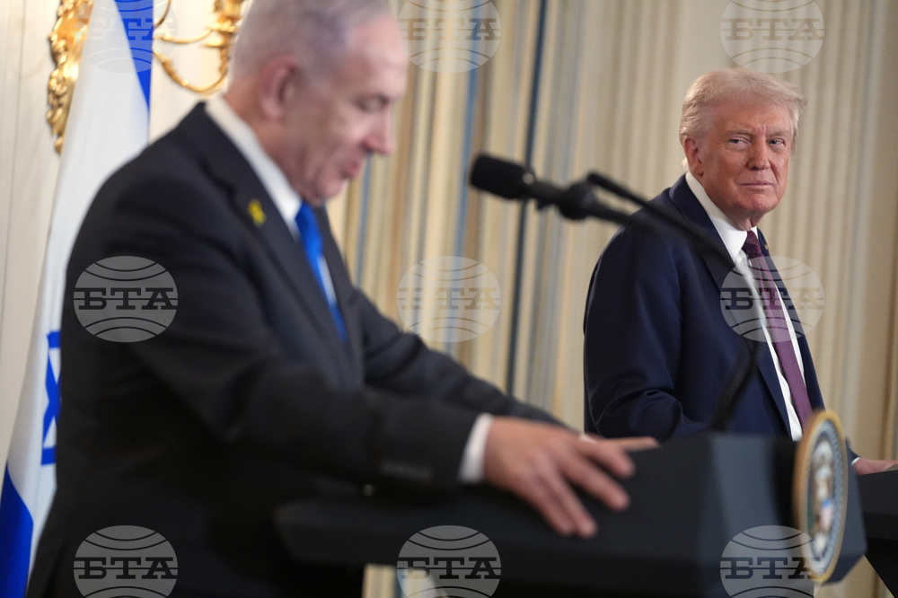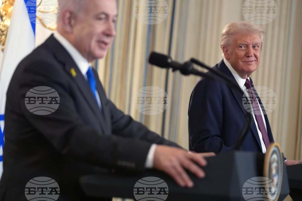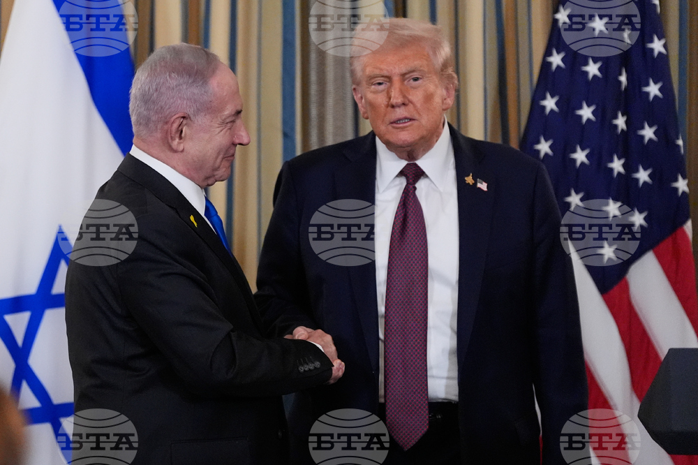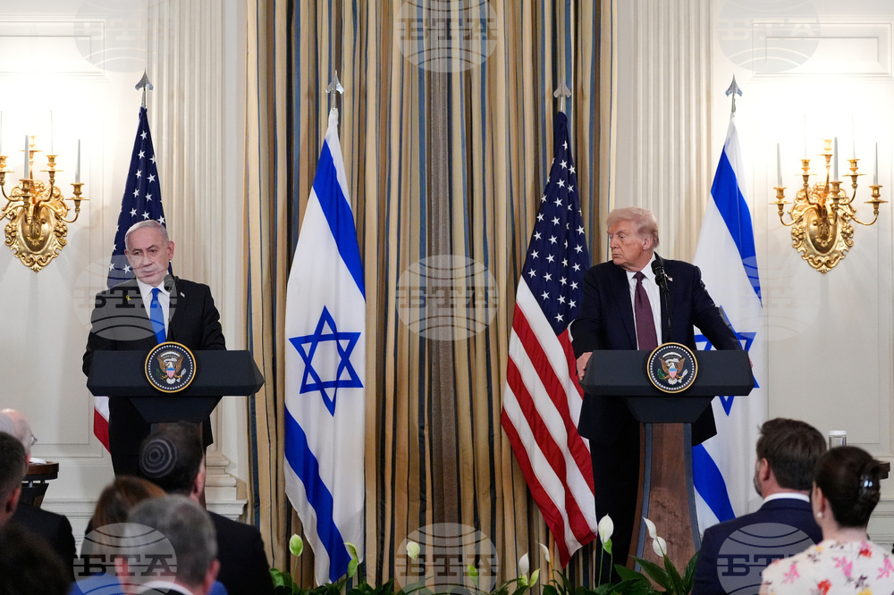 Israeli Prime Minister Benjamin Netanyahu, from left, speaks during a news conference with President Donald Trump in the State Dining Room of the White House, Monday, Sept. 29, 2025, in Washington. (AP Photo/Evan Vucci)