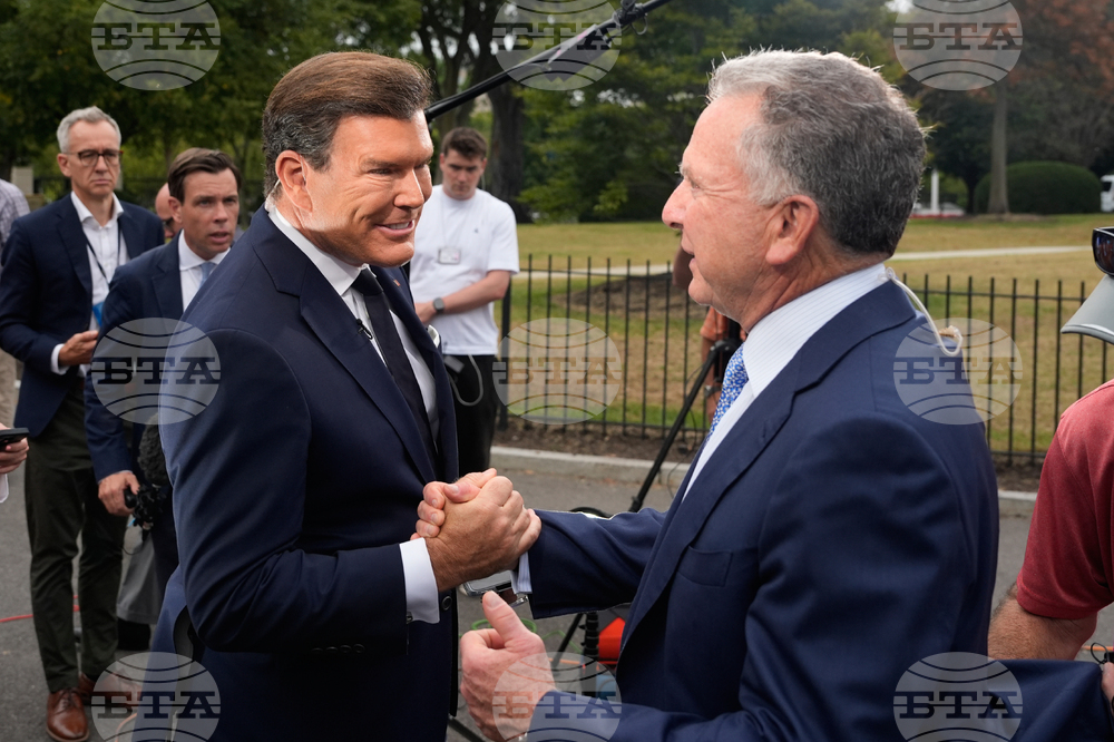 U.S. Special Envoy to the Middle East Steve Witkoff shakes hands with FOX News Channel's Bret Baier outside the West Wing of the White House Monday, Sept. 29, 2025, in Washington. (AP Photo/Alex Brandon)