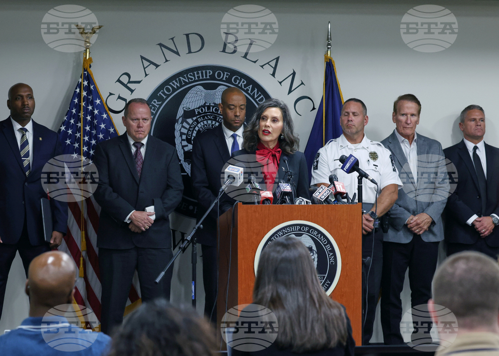 Michigan Gov. Gretchen Whitmer addresses the media, regarding the shooting at the Church of Jesus Christ of Latter-day Saints, during a news conference at the Grand Blanc Township police, Monday, Sept. 29, 2025 in Grand Blanc Township, Mich. (AP Photo/Carlos Osorio)