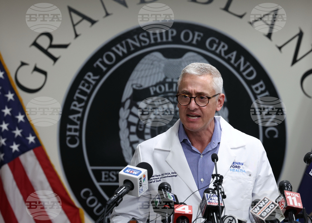 Henry Ford Hospital Chief of Staff Michael Denic addresses the media regarding the shooting at the Church of Jesus Christ of Latter-day Saints during a news conference at the Grand Blanc Township police department, Monday, Sept. 29, 2025 in Grand Blanc Township, Mich. (AP Photo/Carlos Osorio)