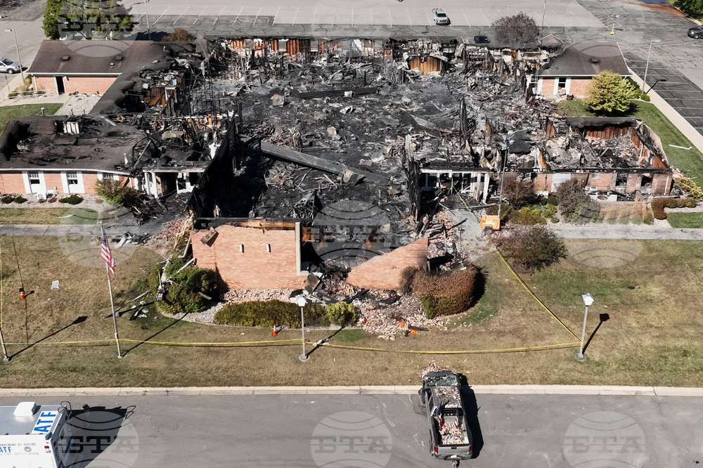 Little remained of The Church of Jesus Christ of Latter-day Saints chapel the day after a former Marine opened fire and set the building ablaze in Grand Blanc Township, Mich., Monday, Sept. 29, 2025. (AP Photo/Mark Vancleave)