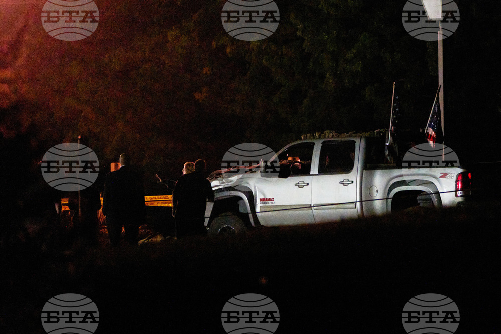An ATF vehicle is seen in front of a vehicle used by a man who allegedly rammed his vehicle Sunday into the side of The Church of Jesus Christ of Latter-day Saints in Grand Blanc Township, Mich., shown Monday, Sept. 29, 2025, before opening fire and setting the building ablaze (AP Photo/Ryan Sun)