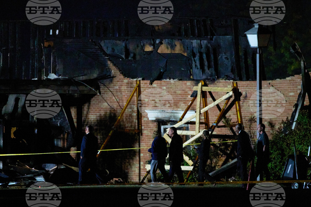 Investigators walk in front of The Church of Jesus Christ of Latter-day Saints in Grand Blanc Township, Mich., on Monday, Sept. 29, 2025, where Sunday morning a man rammed his vehicle into the building before opening fire and setting the building ablaze (AP Photo/Ryan Sun)