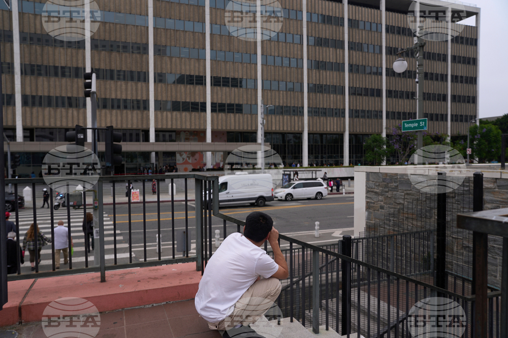 FILE - People line up outside the Los Angeles Federal Building in Los Angeles, housing the U.S. Immigration and Customs Enforcement (ICE) and U.S. Citizenship and Immigration Services (USCIS) on Wednesday, June 25, 2025. (AP Photo/Damian Dovarganes, file)