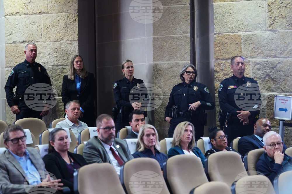 Member of the Austin Police Department attend a news conference regarding a breakthrough in the 1991 "I Can't Believe It's Yogurt" murder case, Monday, Sept. 29, 2025, in Austin, Texas. (AP Photo/Eric Gay)