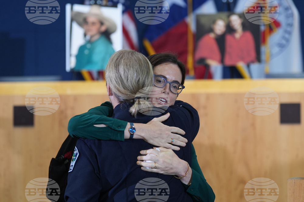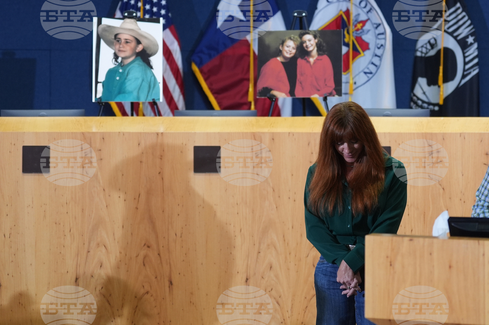 Angie Ayers, sister-in-law of victim Amy Ayers, pictured left, waits to speak during a news conference regarding a breakthrough in the 1991 I Can't Believe It's Yogurt murder case, Monday, Sept. 29, 2025, in Austin, Texas. (AP Photo/Eric Gay)