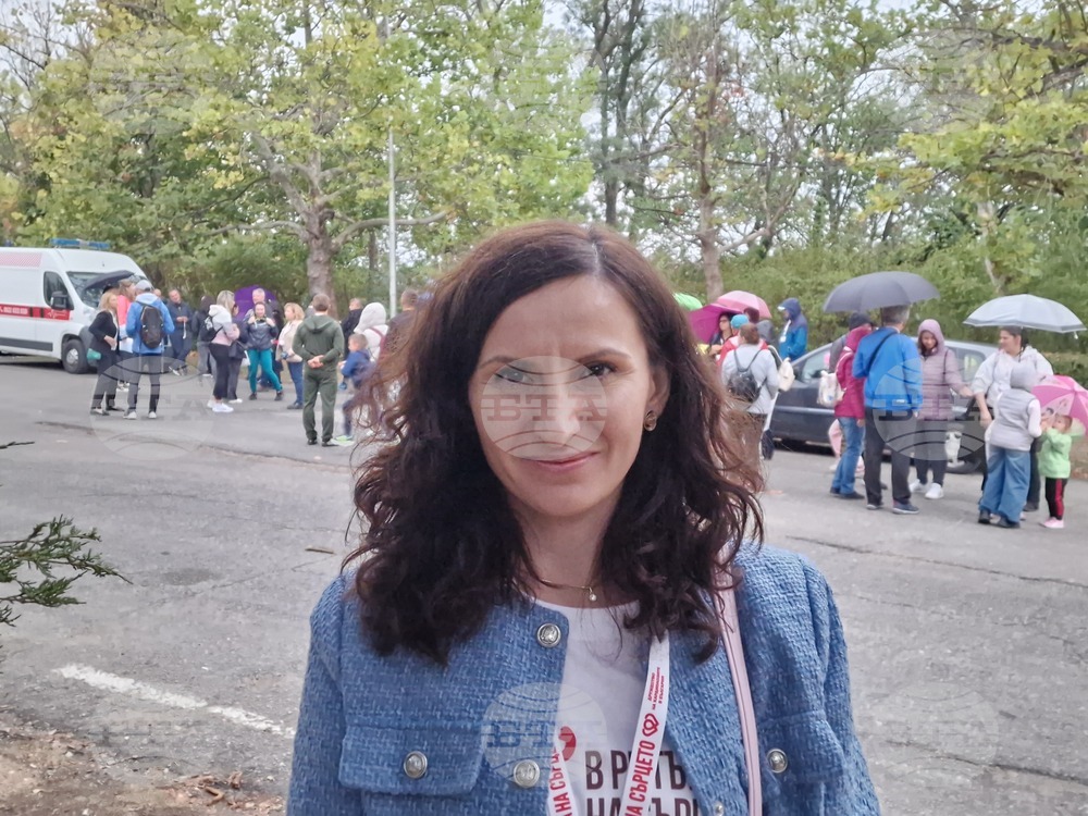 Велико Търново (29 септември 2025) Във Велико Търново десетки хора на всякаква възраст се включиха в инициатива по случай Световния ден на сърцето - 29 септември. Те се събраха в подножието на хълма Света гора, след което изкачиха стотиците стълби, водещи към върха му. На снимката: кардиологът д-р Билгян Юсеинова от Специализираната болница по кардиология във Велико Търново.