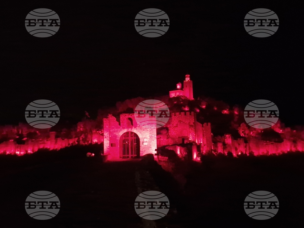 Велико Търново (29 септември 2025) Крепостта „Царевец“ във Велико Търново бе осветена в червено по случай Световния ден на сърцето.