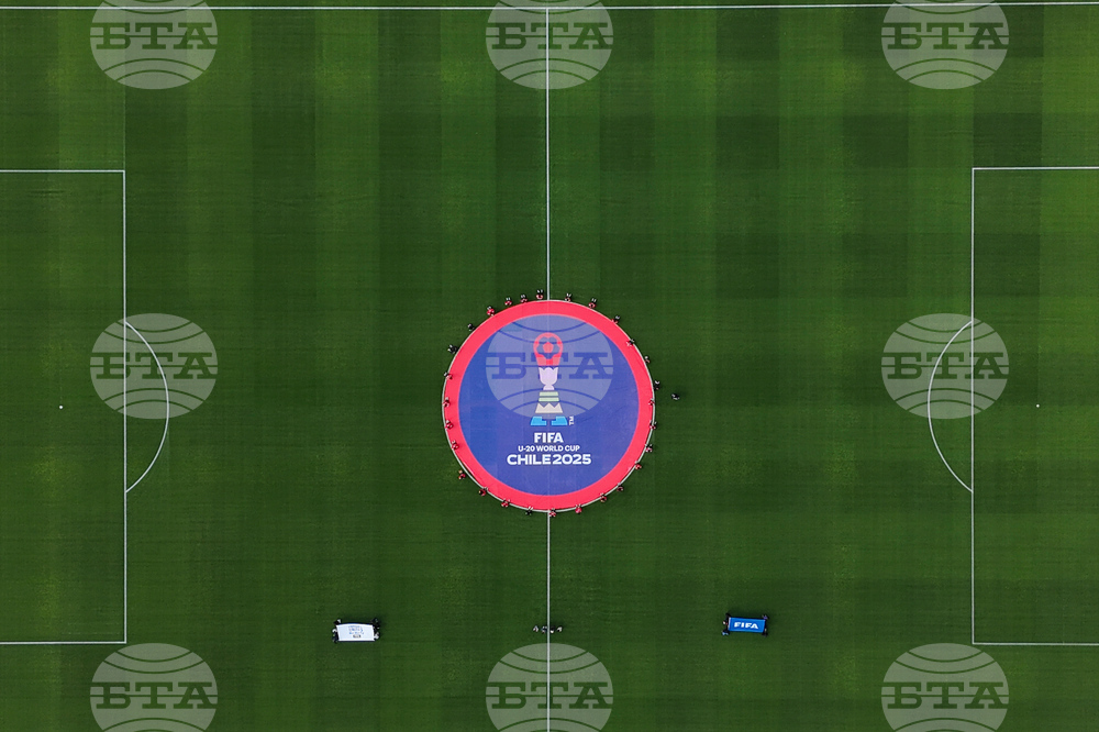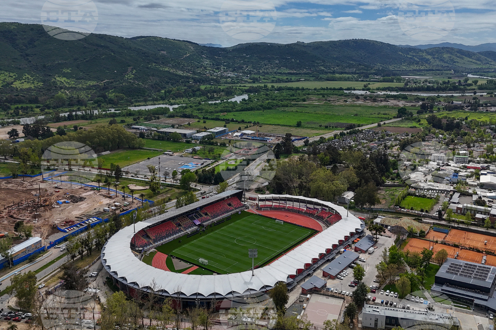 An aerial view shows Fiscal Stadium during the FIFA U-20 World Cup in Talca, Chile, Monday, Sept. 29, 2025. (AP Photo/Matias Delacroix)