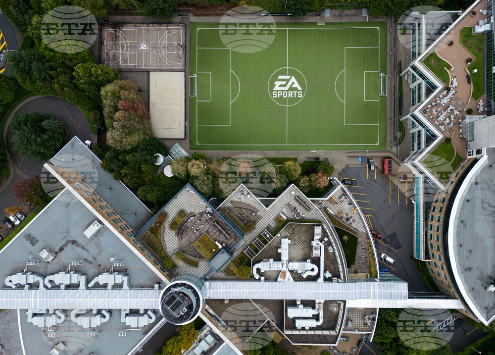 Electronic Arts' office and studio complex is seen in an aerial view, in Burnaby, British Columbia, Monday, Sept. 29, 2025, as the maker of video games like “Madden NFL," “Battlefield,” and “The Sims,” is being acquired for $55 billion in what could become the largest private equity-funded buyout in history. (Darryl Dyck/The Canadian Press via AP)