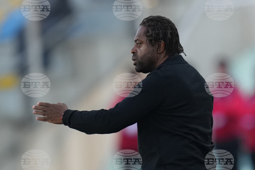 South Africa's coach Raymond Mdaka instructs his players during a FIFA U-20 World Cup Group E soccer match against France at El Teniente Stadium in Rancagua, Chile, Monday, Sept. 29, 2025. (AP Photo/Andre Penner)