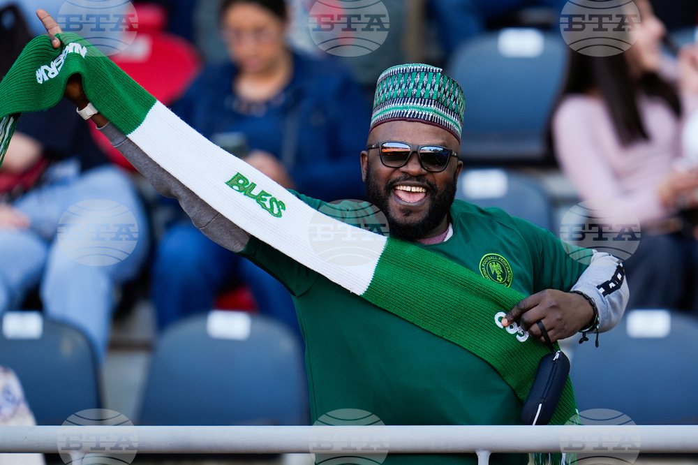 A Nigeria fan cheers during a FIFA U-20 World Cup Group F soccer match against Norway at Fiscal Stadium in Talca, Chile, Monday, Sept. 29, 2025. (AP Photo/Matias Delacroix)